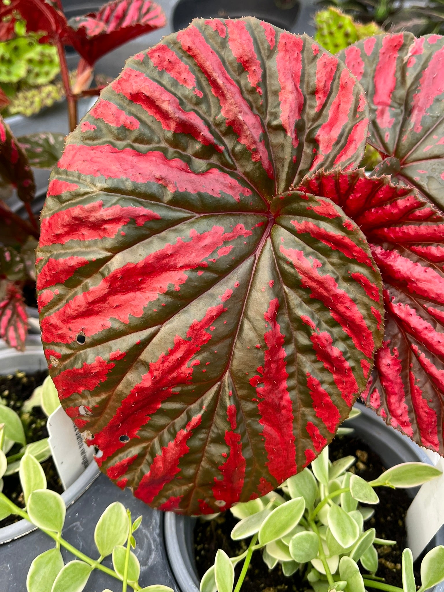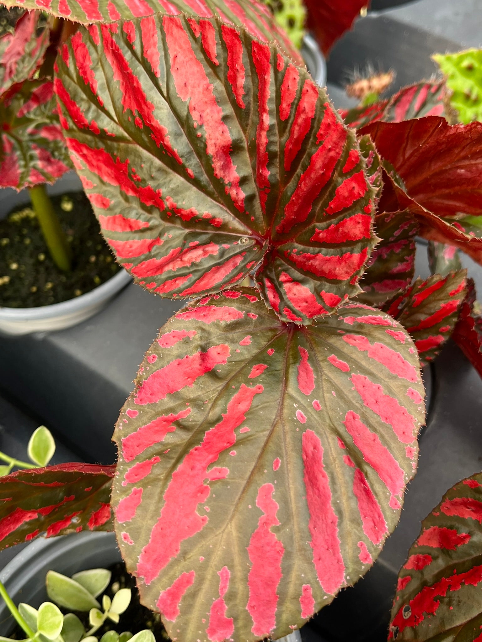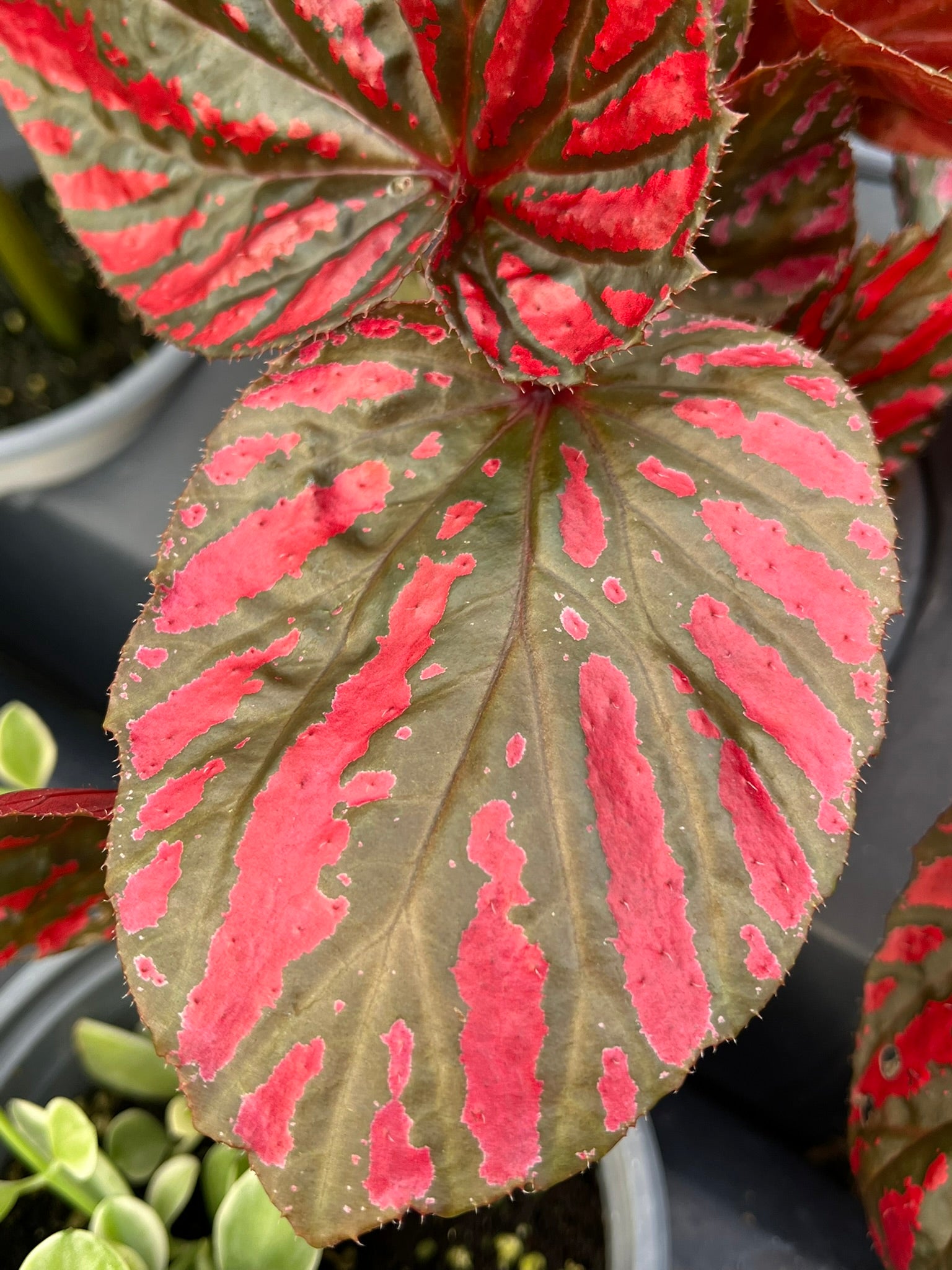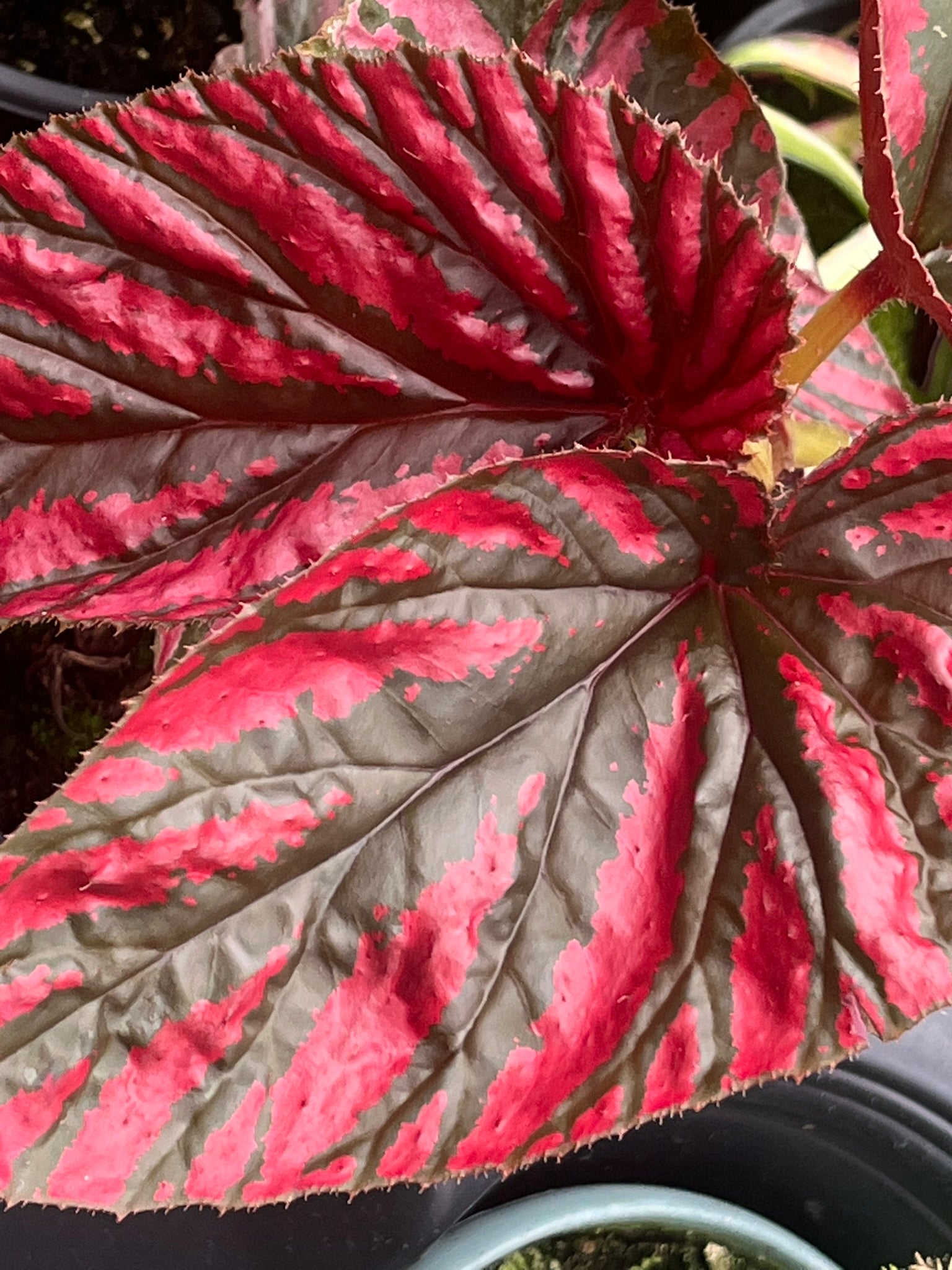 There’s something magical about watching this begonia unfurl a new leaf. The soft pink veining deepens as the leaf matures, glowing against the dark green like a flame in the forest. It's not just a plant—it’s a celebration of nature’s creativity.
