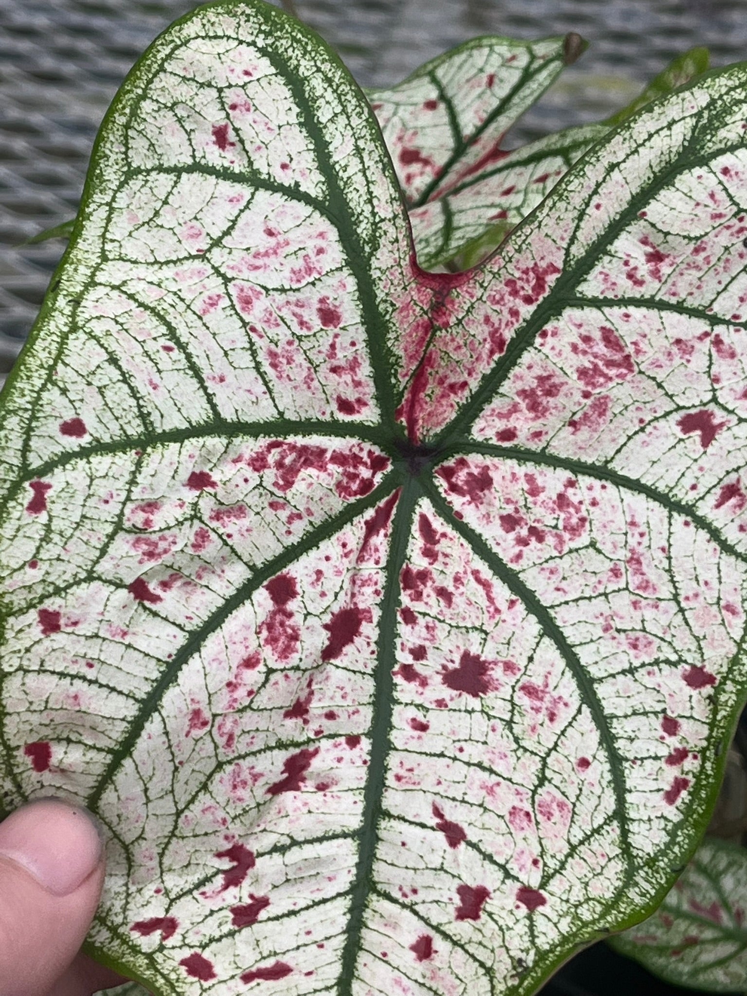 Delicate as a raindrop and just as refreshing—Caladium 'Yad Fun' (which means “Raindrop” in Thai) brings a soft, dreamy charm to any space it touches. Its heart-shaped leaves are brushed with gentle shades of blush pink or soft rose, accented by fine red veins and framed by soothing green margins. The overall effect is light, airy, and utterly romantic—like a garden kissed by morning rain.